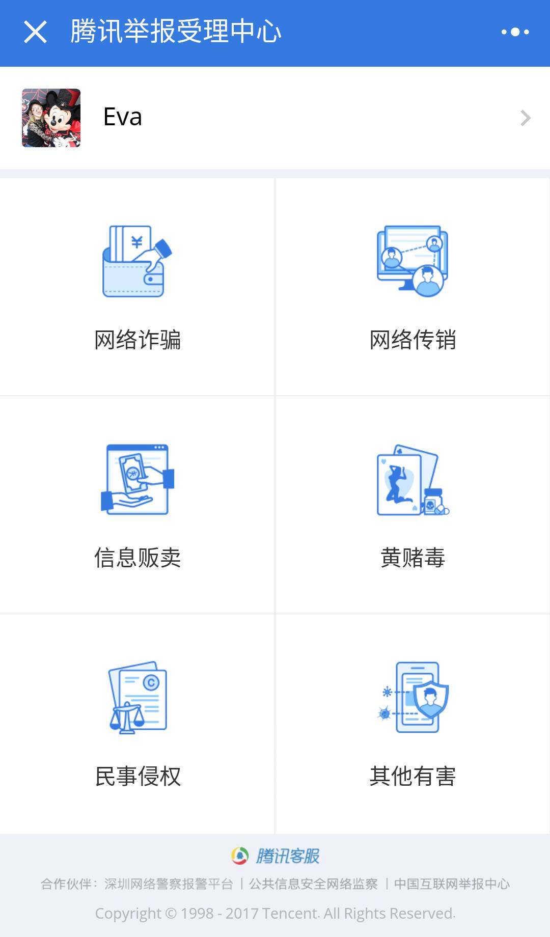 腾讯客服做了小程序“腾讯举报受理中心”,专门受理用户在腾讯平台上发现的不良行为。用户可以对QQ、微信上的网络诈骗、网络传销、信息贩卖、黄赌毒等违法违规行为进行举报。后台会有专人进行审核,并在72小时内进行处理,并将结果反馈给用户。