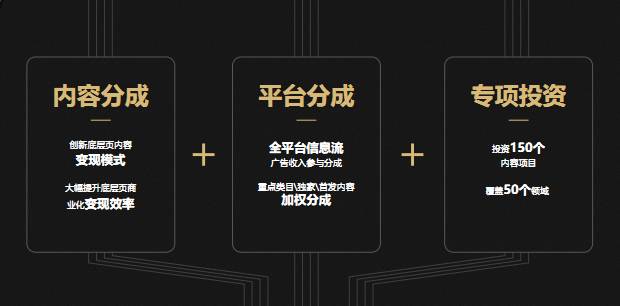 4. 100亿的资金支持:内容分成、平台支持,以及专项投资。