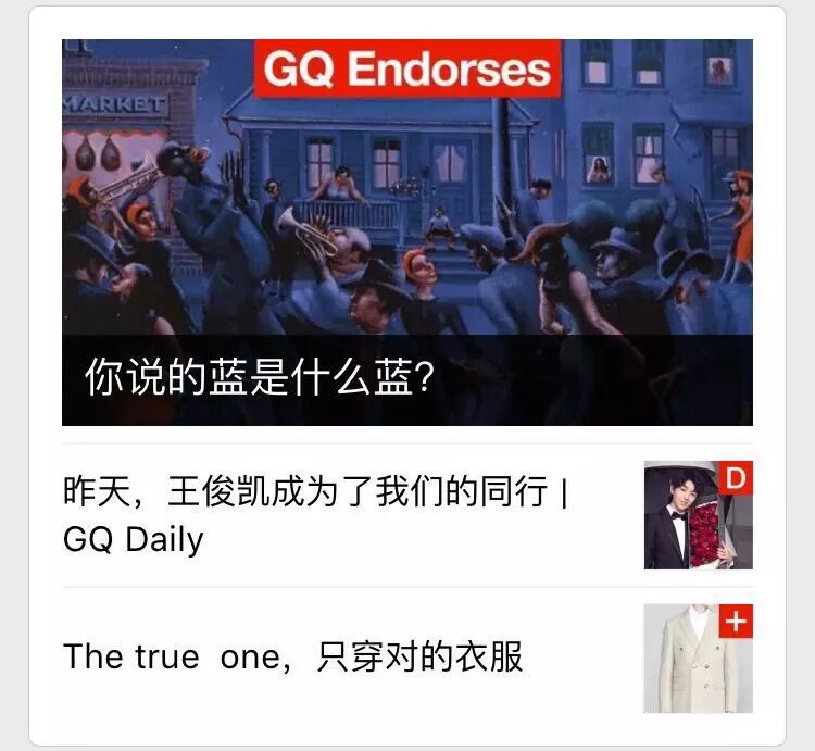 比如“GQ实验室”,承袭杂志简单清爽、又有设计感的风格,封面图顶部加有红底白字的栏目logo,小图上也有红底白字的小标志(这个小设计很心机,像似未读标记,莫名叫人想戳)。