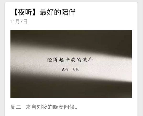 还有神奇大号“夜听”,主视觉是永恒不变的“一束光洒向白纸,打亮那句触动人心的句子”,这样明确的头图风格,被那些模仿“夜听”音频内容模式的人,纷纷效仿。