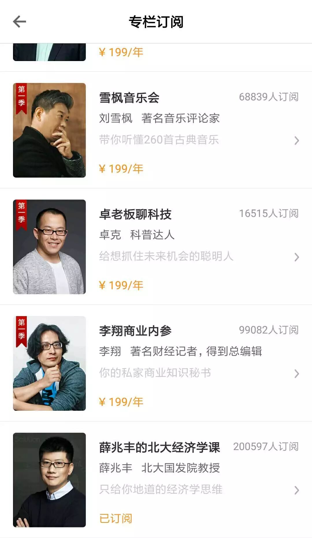 《薛兆丰的北大经济学课》已有超过20万人订阅,不光是得到上订阅人数最多的专栏,也可能是全世界最大的经济学课堂。让普通人也可以花199块钱听到一流高校教授们的精彩课堂。
