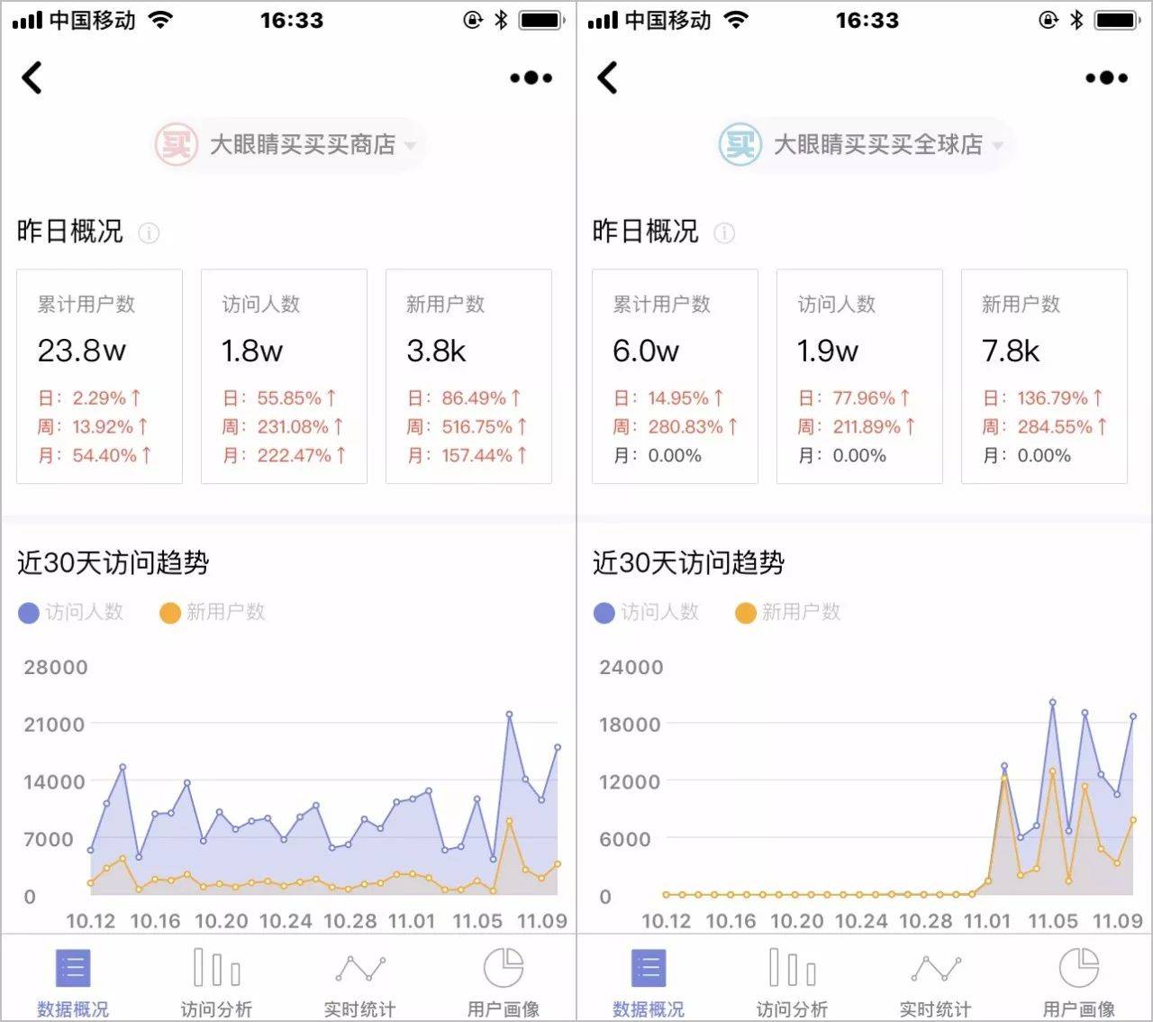 “大眼睛买买买商店”和“大眼睛买买买全球店”数据表现