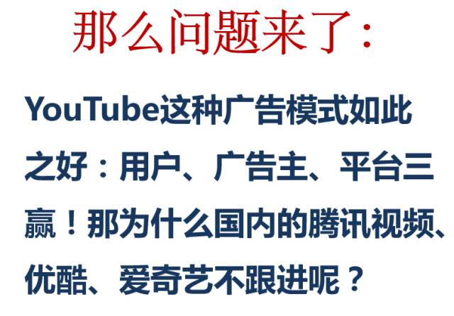 他们是傻么?这个还真不是!“我们不允许别国对我们选择的道路说三道四”。优酷、爱奇艺选择的是有中国特色的视频商业化发展道路,具体原因主要有以下三点: