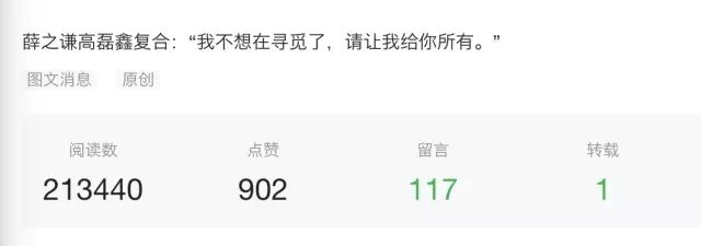 这并不是【小多酱】唯一的十万加,在此之前,一篇《薛之谦与高磊鑫复合:“我不想再寻觅了,请让我给你所有》的热点文,也收获了25W+的阅读量,和当天7K+的增粉。