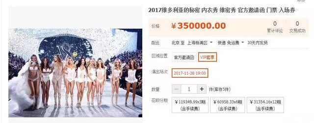 就在维密大秀开始前,网上又爆出高达35万的天价门票,赚足一波噱头。