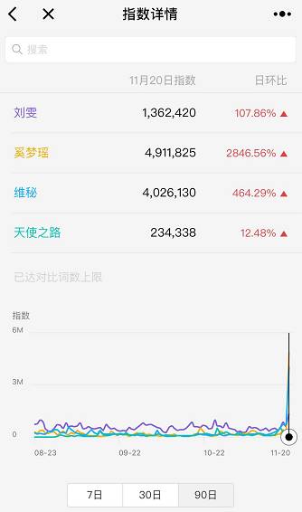 而从微信指数来看,“奚梦瑶”的热度也力超“维密”的热度。奚梦瑶摔跤恰为维密带来了求之不得的流量话题,以至于有人怀疑这是场“假摔”。而从舆论导向来看,吃瓜群众这次也出奇一致地站在了“心疼明明”“明明最棒”一边。