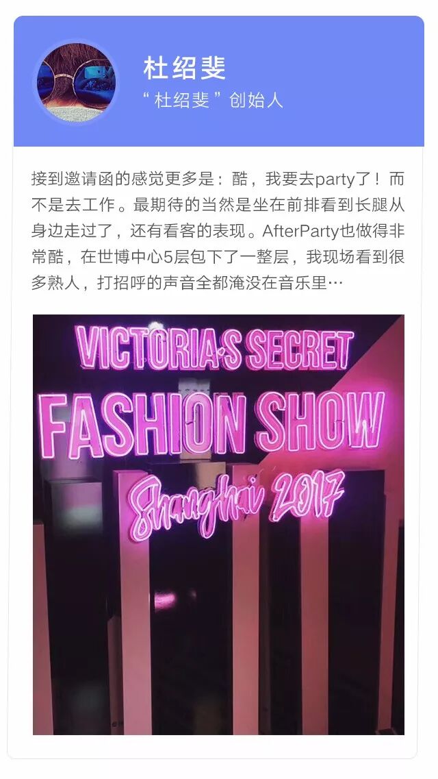 同样是第一次受邀到维密现场的,还有时尚类自媒体“商务范”和“杜绍斐”。