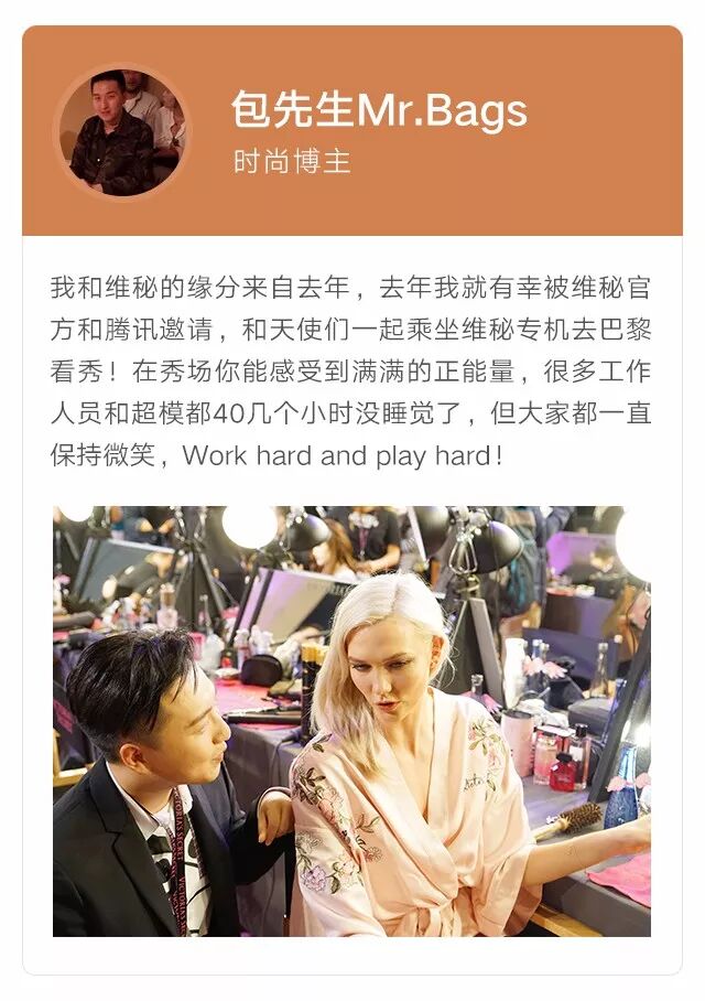 在微信、微博拥有近400万粉丝的包先生,去年就受到维密官方和腾讯的邀请,成了第一个登上维密专机的亚洲博主。