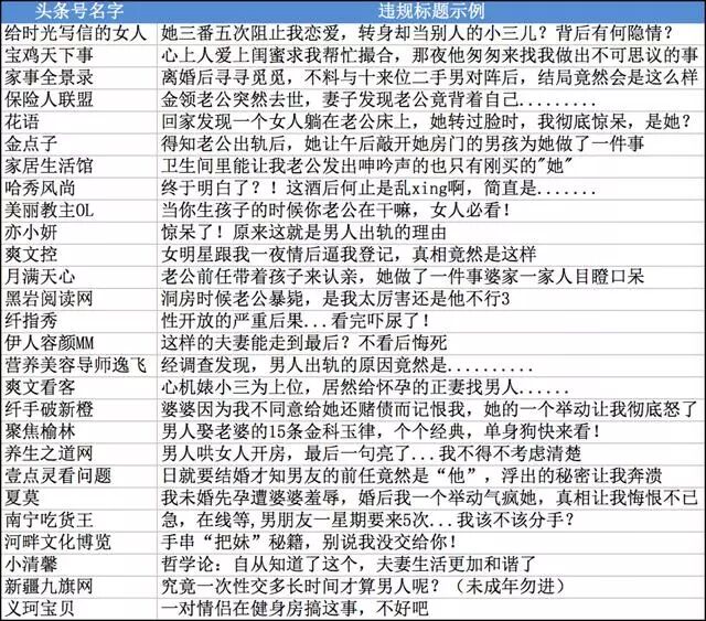(头条号部分违规账号及标题)