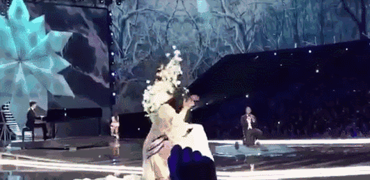 出场没走几步就滑倒了,咣当一声特别响。足足跪了超过10秒才站起来,场面一度非常尴尬。