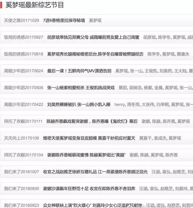 不少类似立场的文章,都在文中提到奚梦瑶近年来排得满满的的综艺节目。