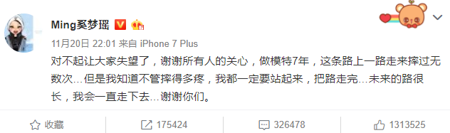 连维密官方都表明“当然是原谅她”,11月21日,维密首席营销官Edward Razek在Istagram上发文回应:“奚梦瑶,摔倒了没什么好丢人的。站起来完成走秀就是巨大的胜利。”