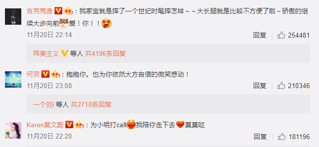 评论区有大批明星为她打call,“你是最棒的”、“摔了一个世纪时髦摔”、“为你依然大方自信的微笑感动”……