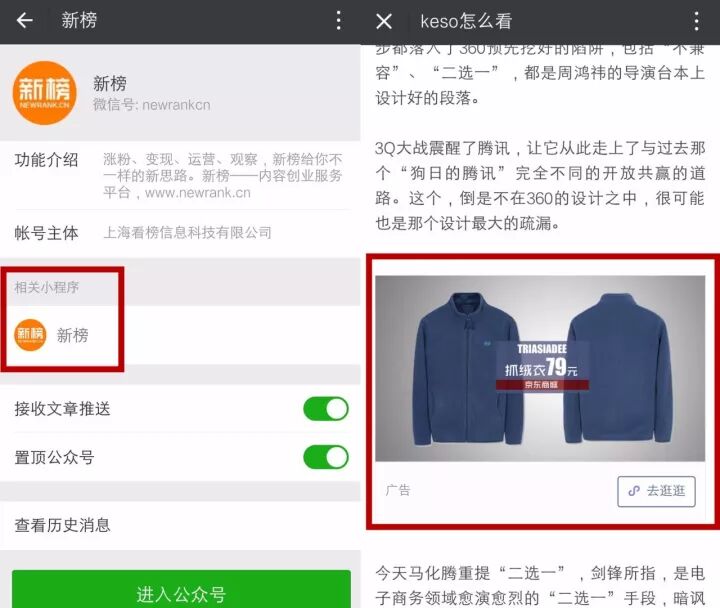 主要指公众号推文的中插广告和公众号文章底部广告。