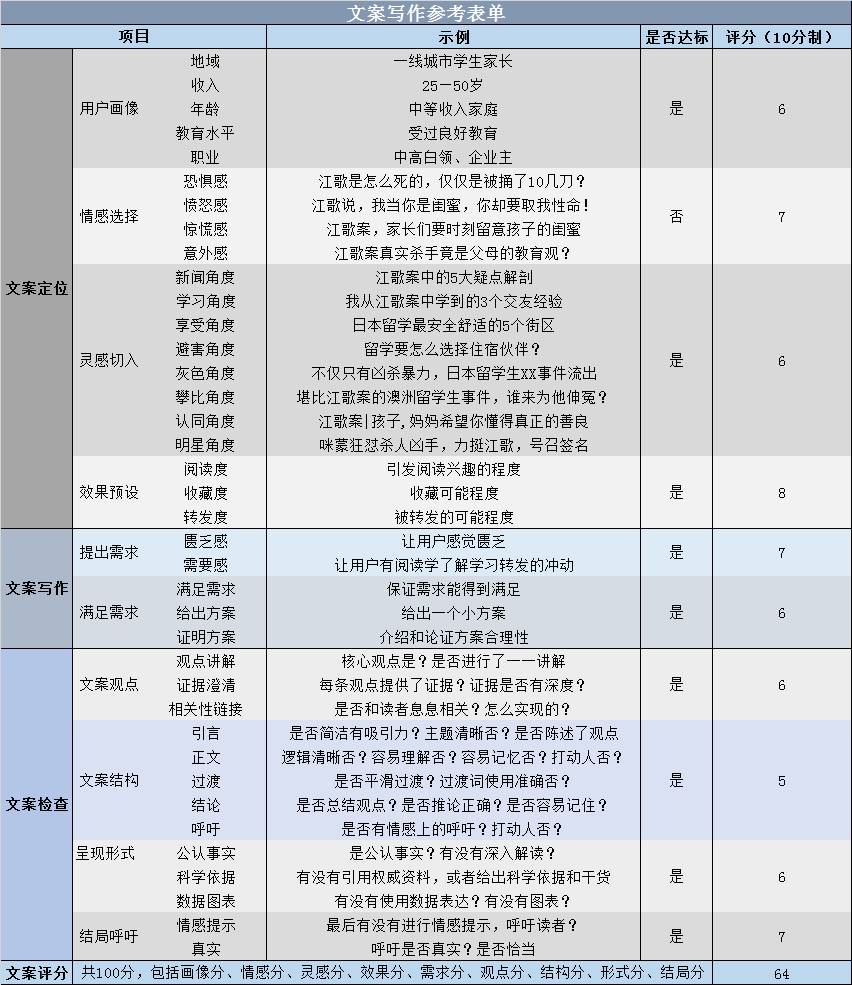 再者,好文章都是改出来的,多问问自己以下这些问题,给自己的文案打打分: