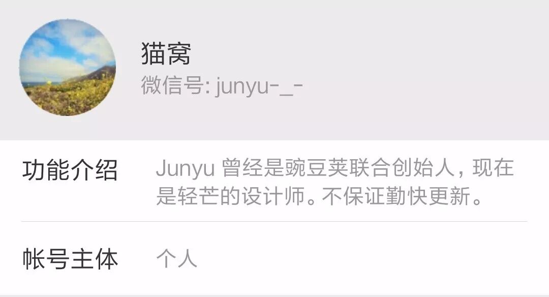 “Junyu曾经是豌豆荚联合创始人,现在是轻芒的设计师。不保证勤快更新。”