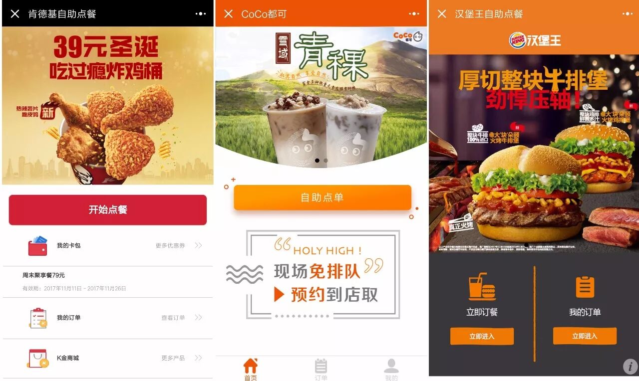 这样看来,餐饮商家做点餐小程序,似乎是水到渠成。肯德基、coco奶茶、汉堡王等餐饮商家也早早入局,成为第一批获得红利的小程序玩家。