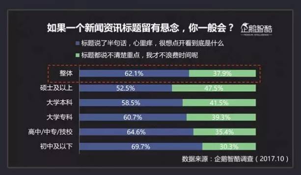 从这次报告显示的结果来看,中小城市的用户还是比较热衷于标题党的。即使是一线城市的用户,也没有很明显的拒绝。毕竟在信息大爆炸时代,用户每天接触的标题太多,早就成了老油条,没点冲击力的标题还真吸引不了谁。
