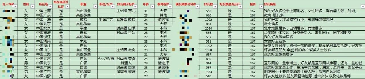 目前朋友圈有公开报价的KOL分为两类,一类较为垂直细分,集中在科技、互联网、时尚等领域,定价通常是参考朋友圈的行业影响力,比如自身有什么知名作品,好友有什么层级的人。