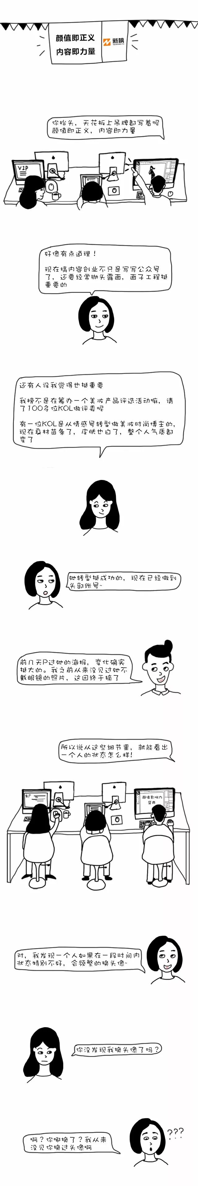 毫无疑问的颜值时代, 不管你愿不愿意, 或者能够认同多少, 它已经到来。 颜值究竟是什么? 它能怎么影响我们的生活? 新媒体的沃土又“滋养”了怎样的颜值观? …… 欢迎进入榜哥榜妹周末吹水时间——《颜值这回事儿》,除了上述提到的正经问题,我们什么都聊。 全文内容纯属虚构,请勿对号入座。 图片作者:Poco 文案:雷拉 猜猜上面三位榜哥榜妹分别是什么部门的? 了解百咖大赏请扫描下方二维码或点击“阅读原文”。↓↓↓