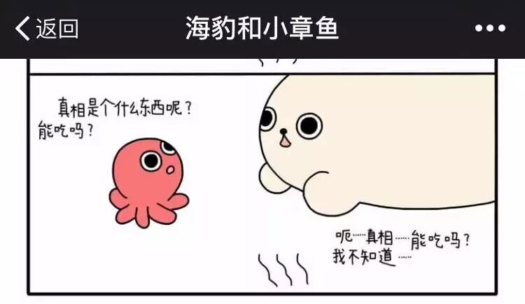 漫画的主角是海豹、海牛和小章鱼,聊聊数笔就勾勒出惹人喜爱的模样。它们或呆萌闲散,或天真乐观,在悠闲的日常中捕捉关于生活的感悟。虽然也有不少烦心事,会有莫名的“丧”,但它们很容易就能够开心起来,让人觉得满满的治愈。