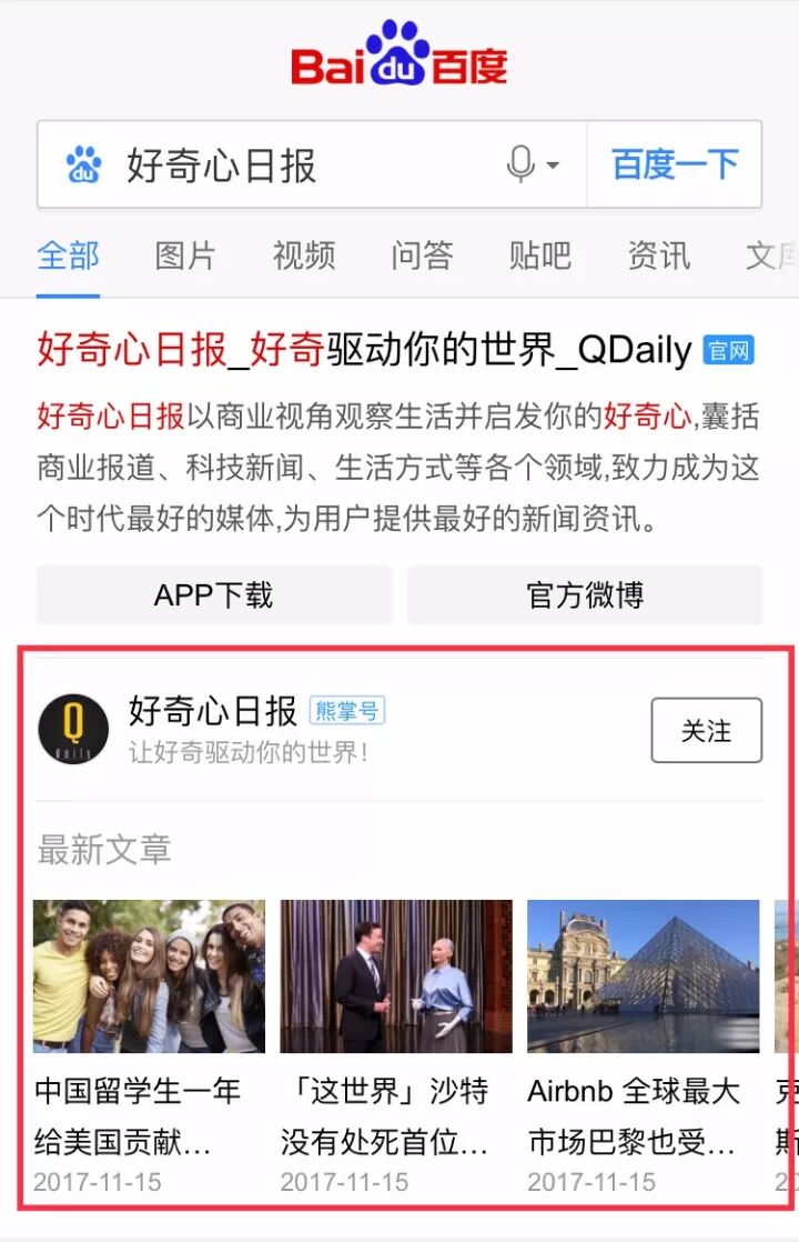 百度似乎也窥探到了这个趋势,在今年的百度世界大会上宣布开通了“熊掌号”,站长可以通过熊掌号将自己网站的数据共享给百度搜索引擎,用户搜索时可以获取到网站结构化的数据展示。