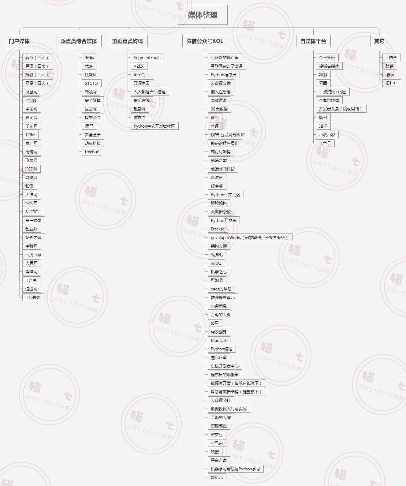 首先,梳理公司产品可触及的媒体领域。对于从C端产品来说搜集比较轻松,找到百家几百家不是值得炫耀的事情,需要集中时间精力对待的是划分重点与梯度。