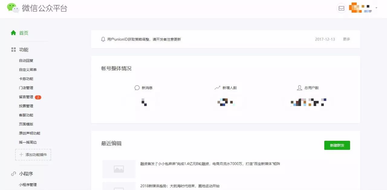 微信公众平台更新为正式版后,打开后台,会发现整体的视觉感受有明显改变。