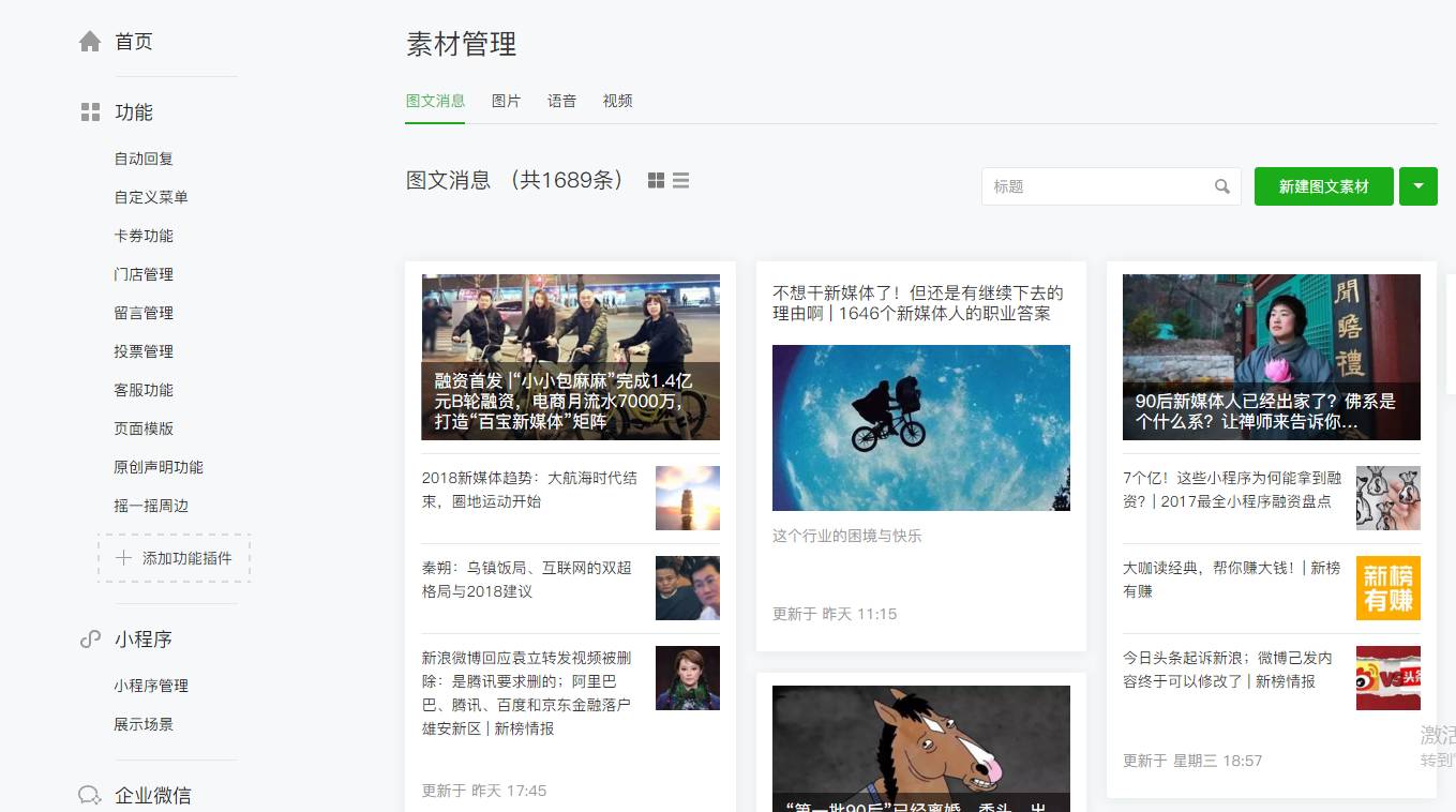 4. 素材管理页面卡片化,与推送后展示方式统一