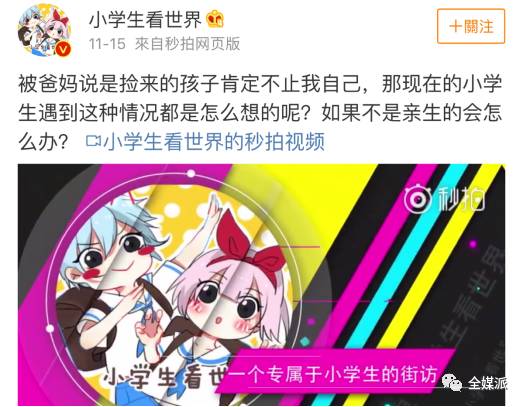 与情感向设问不同,这一类设问确定了明确的互动范围,例如以老年人或小学生作为采访对象,但采访问题却都是年轻人关心或是可供年轻人消遣的。以不同的人群视角呈现现代人关心的问题,满足好奇心成为了吸引用户的主要手段。