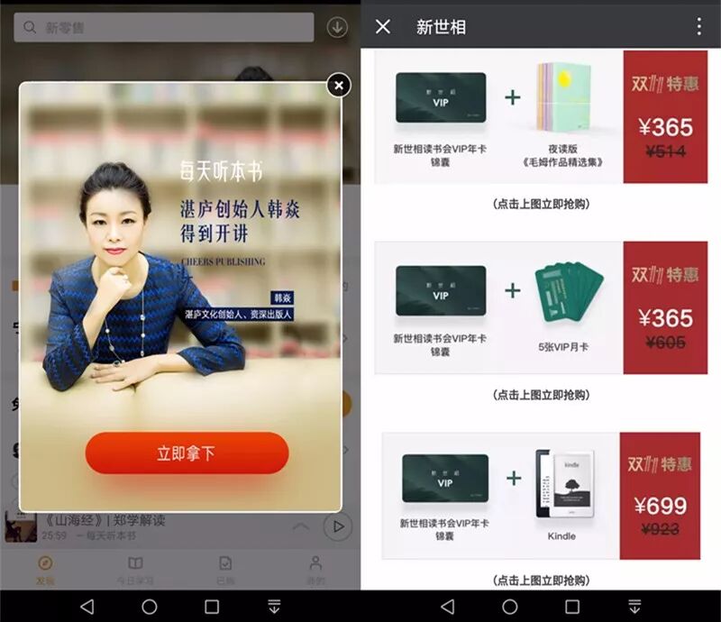 罗辑思维旗下的“得到”,张伟的“新世相读书会”,拿这两个产品举例
