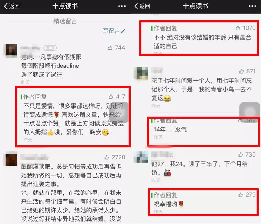 和有书一样,十点读书也特别注重和粉丝互动,每篇推文都会放出100条留言,作者会与留言者进行沟通与互动,这个过程看似简单留言,实则为公众号粉丝维护、增加用户好感的手段。