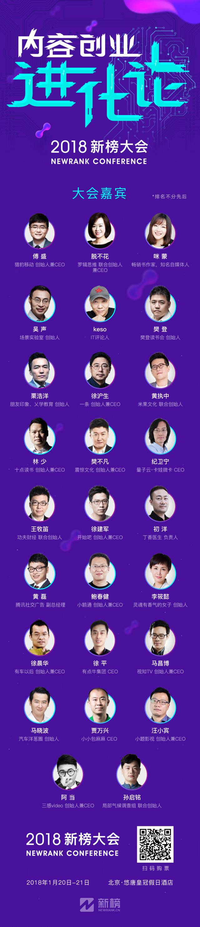2018年1月20日和1月21日,以上嘉宾都将出席2018新榜大会,你准备好一起“进化”了吗?