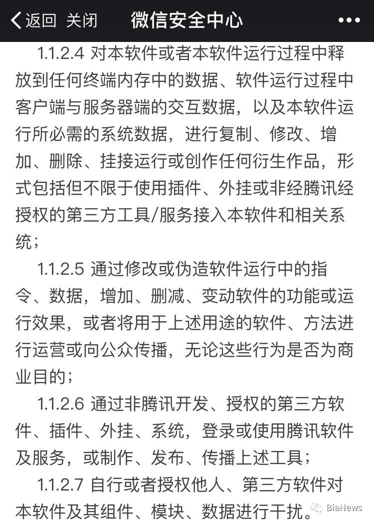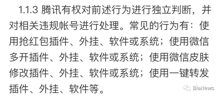 据了解,微信个人帐号使用规范有关于第三方软件的说明,一经发现用户使用第三方软件或插件,腾讯有权对前述行为进行独立判断,并对相关违规帐号进行处理。