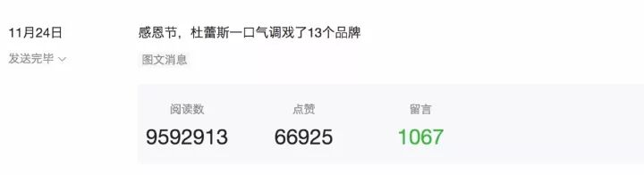 因为内容涨粉,往往带来的是精准粉丝,黏性很高。比如11月份,公众号“休克文案”借势杜蕾斯海报,写了一篇900W+阅读的《感恩节,杜蕾斯一口气调戏了13个品牌》。