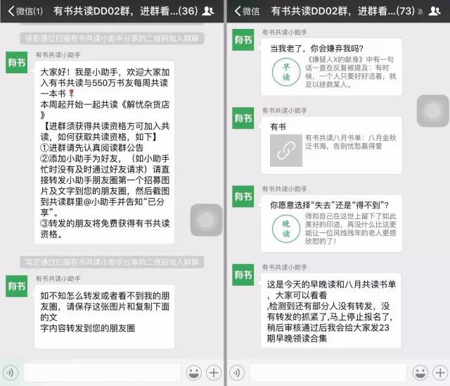 群裂变最经典的案例,就是8个月涨粉700万的“有书”。玩法大致是这样的: