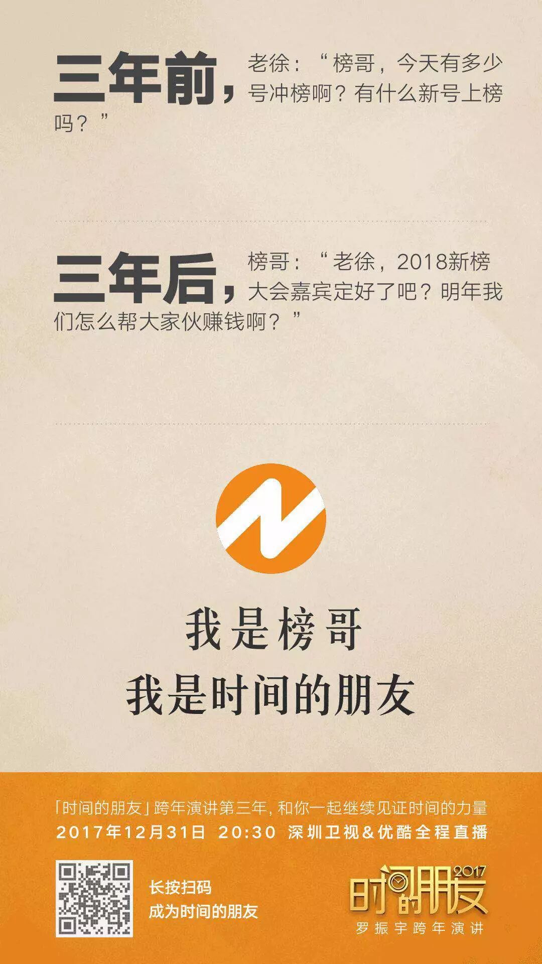 2017年12月 时间的朋友跨年演讲即将迎来跨年演讲第三场,今年由得到App主办。