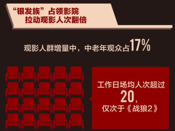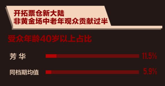 《芳华》上映后,影院观影人次实现翻倍增长,带来的中老年观众增量,拉动影院人次增长17%,其中非黄时段增长21%,黄金时段增长16%。