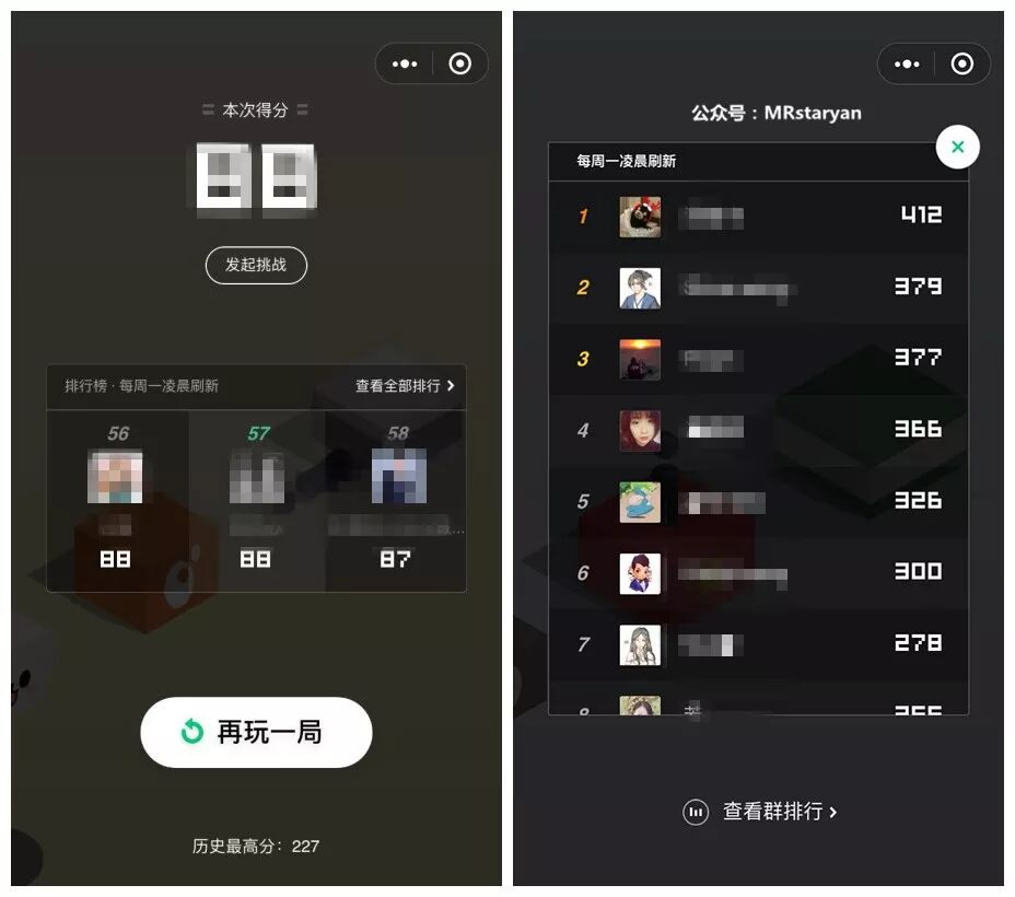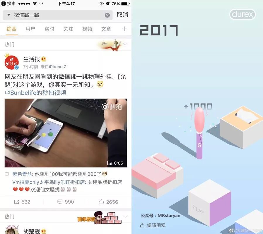 2)回馈型触发。微信有意设置了一些彩蛋,加上刷屏效应,随后自媒体的解析视频,各种攻略帖,蹭的热点,纷纷爆发,放大了跳一跳的传播面。
