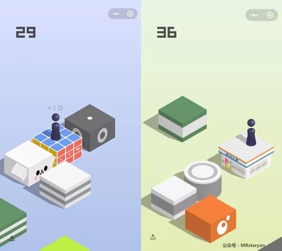 再比如那个加分彩蛋,遇到下水道盒子/魔方/徐记士多/音乐盒 这4类盒子的时候,只要站在上面等一会儿,然后就会有额外加分也是如此。