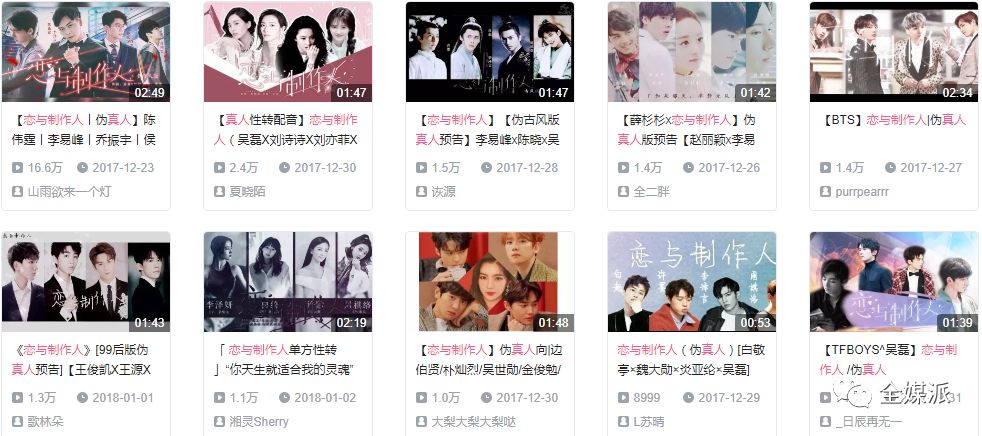 《恋与制作人》大火,随之发展出一系列衍生文化。玩家们结合游戏人物和情节自发输出小说、音乐,有粉丝还制作了明星的同人视频,在各大平台上形成二次传播。