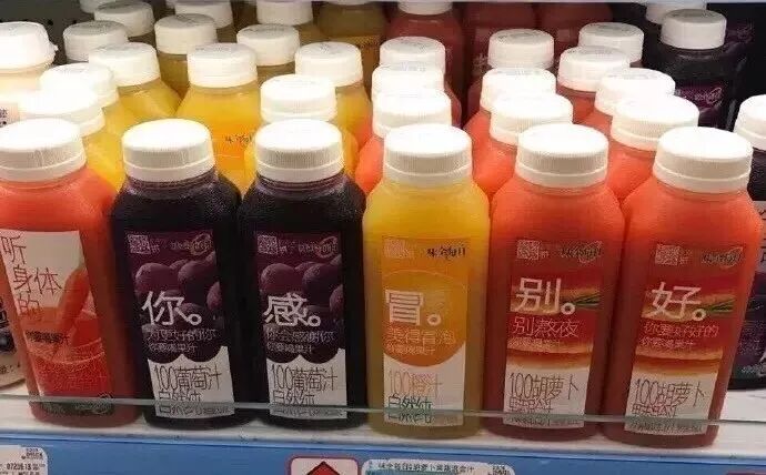 大家可能都喝过味全果汁,如果你留意一下,会发现这个瓶身上有非常有意思的字。