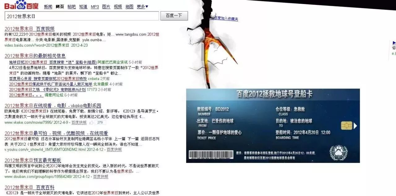 于是,在2012年,百度做了一个案例,叫“2012世界末日”。