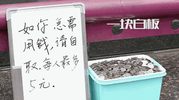 在2017年还有个事件非常火,叫“硬币自取”。就是在某个城市的地铁、或人流比较密集的地方,会出现一个箱子,里面装满了硬币,上面写着“如你急需用钱,请自取,每人最多5元”。