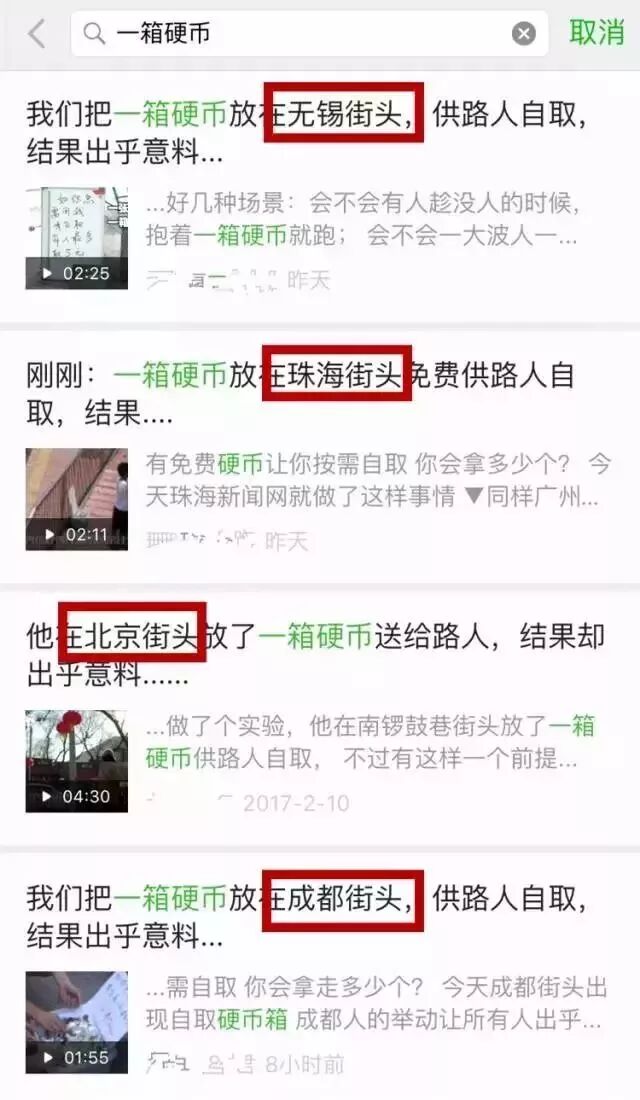 马上,公众号上就出现一篇名为《我们把一箱硬币放在广州街头,供路人自取,结果出乎意料…》的文章。像这样一篇考验人性,又颂扬人性的文章,让所有看到的人都会觉得人性向善,值得传扬,就有了惊人的传播量。