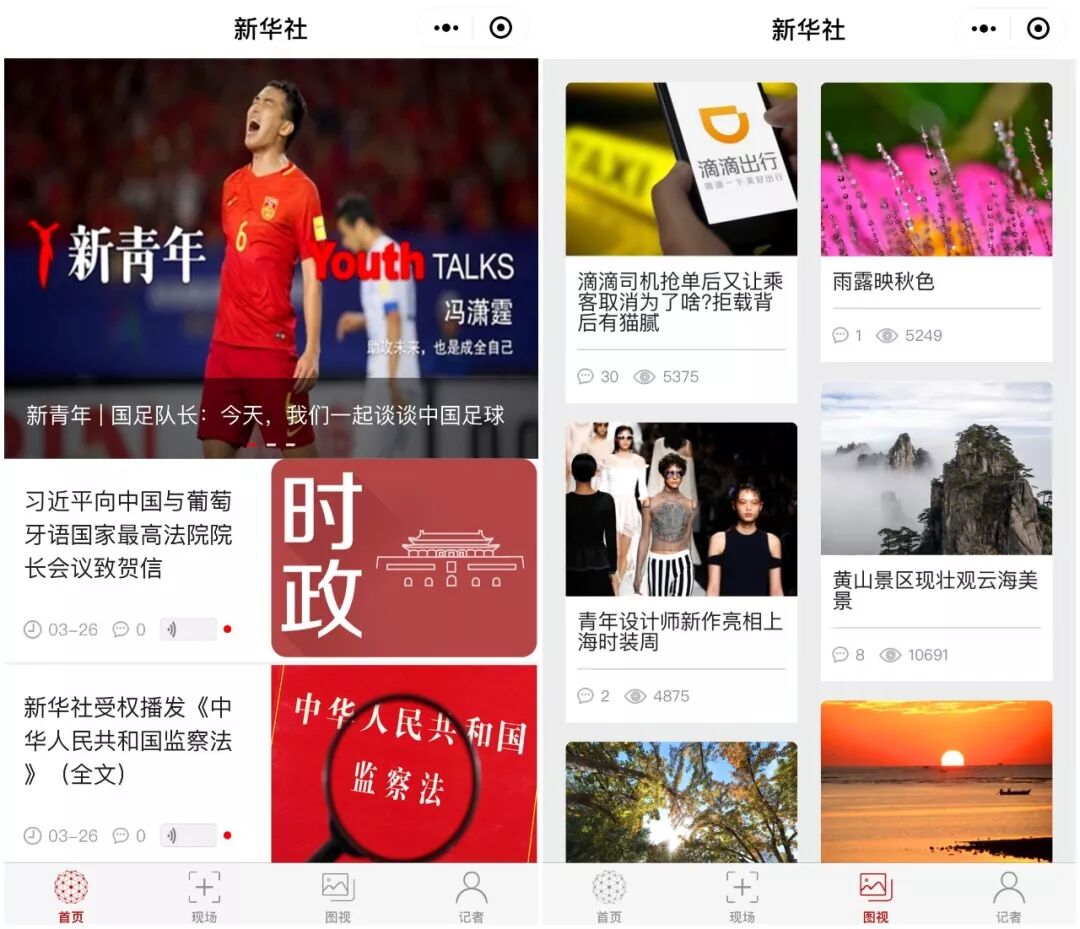 同时,新华社有庞大的内容生产机构,新华国际、参考消息等十几个新华社的公众号目前都已经绑定了我们的小程序。