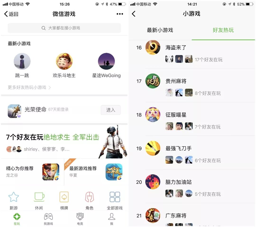 比如,目前用户打开小游戏的路径很长:发现→游戏→最新小游戏→好友热玩。对于小游戏开发者而言,由于没有一个中心化的流量入口,想要在众多小游戏中脱颖而出,就只能依靠游戏本身的可玩性和用户之间的自发传播,以及付费推广(比如投放广点通)。