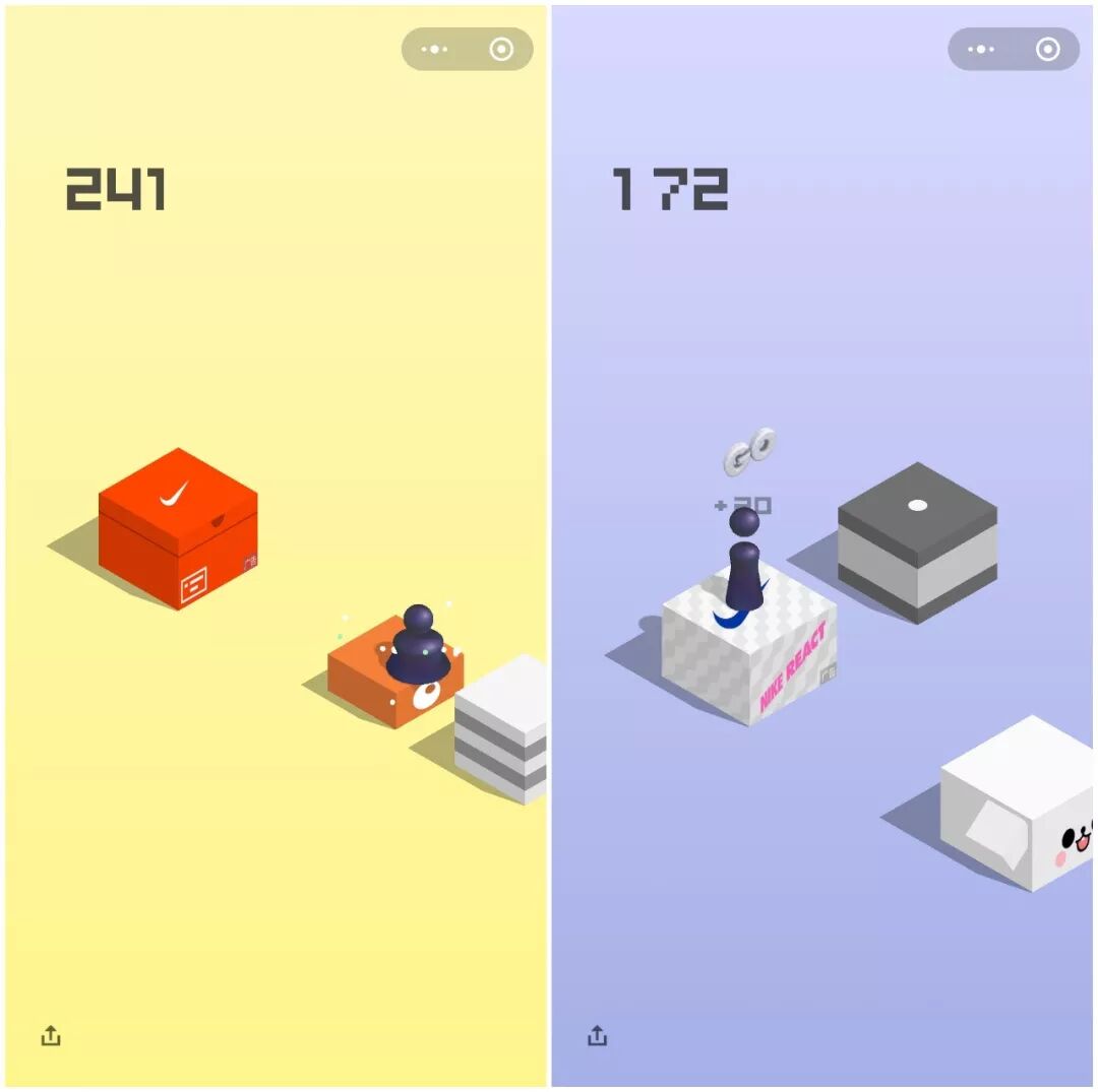 最先试水的是最火小游戏“跳一跳”。今年年初,“跳一跳”先后与麦当劳和耐克合作,推出了印有品牌广告的基座。