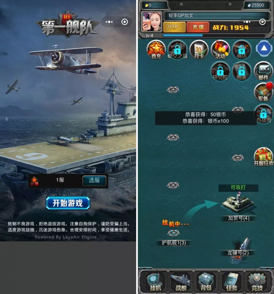 此外,在首批上线的第三方小游戏中,也有一些偏重度体验的SLG(策略游戏)和RPG(角色扮演)游戏,例如 “第一舰队”,在游戏界面里有各种丰富的功能,体验甚至堪比App游戏。