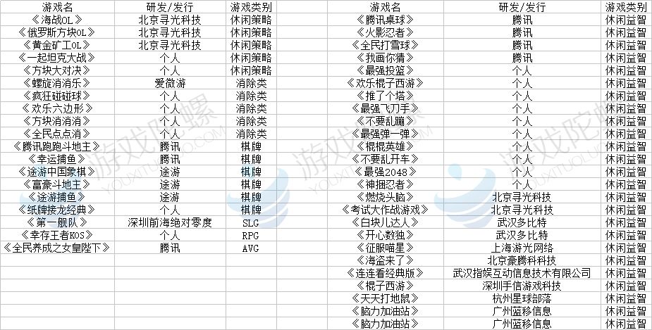 首批第三方小游戏名单 图片来源:游戏陀螺